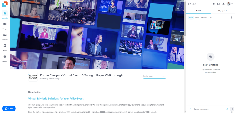 Forum Europe’s virtual solution brings together a host of features and capabilities, including dedicated website design and hosting, a bespoke interactive virtual event platform, speaker & delegate management, and full logistical, content, and technical support.